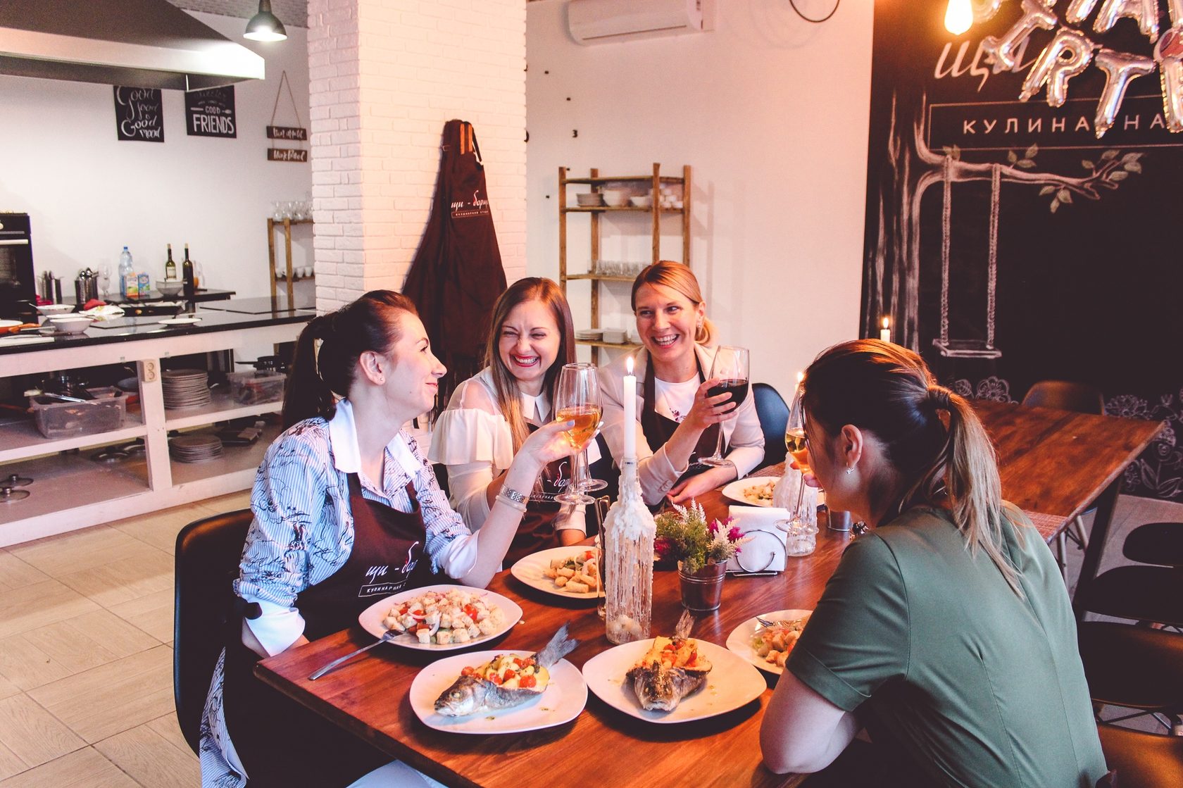 Шумные и веселые кулинарные вечеринки, на которых вы вместе с верными подругами под бокал вина и шепот безобидных сплетен приготовите свои любимые блюда под нашим чутким руководством